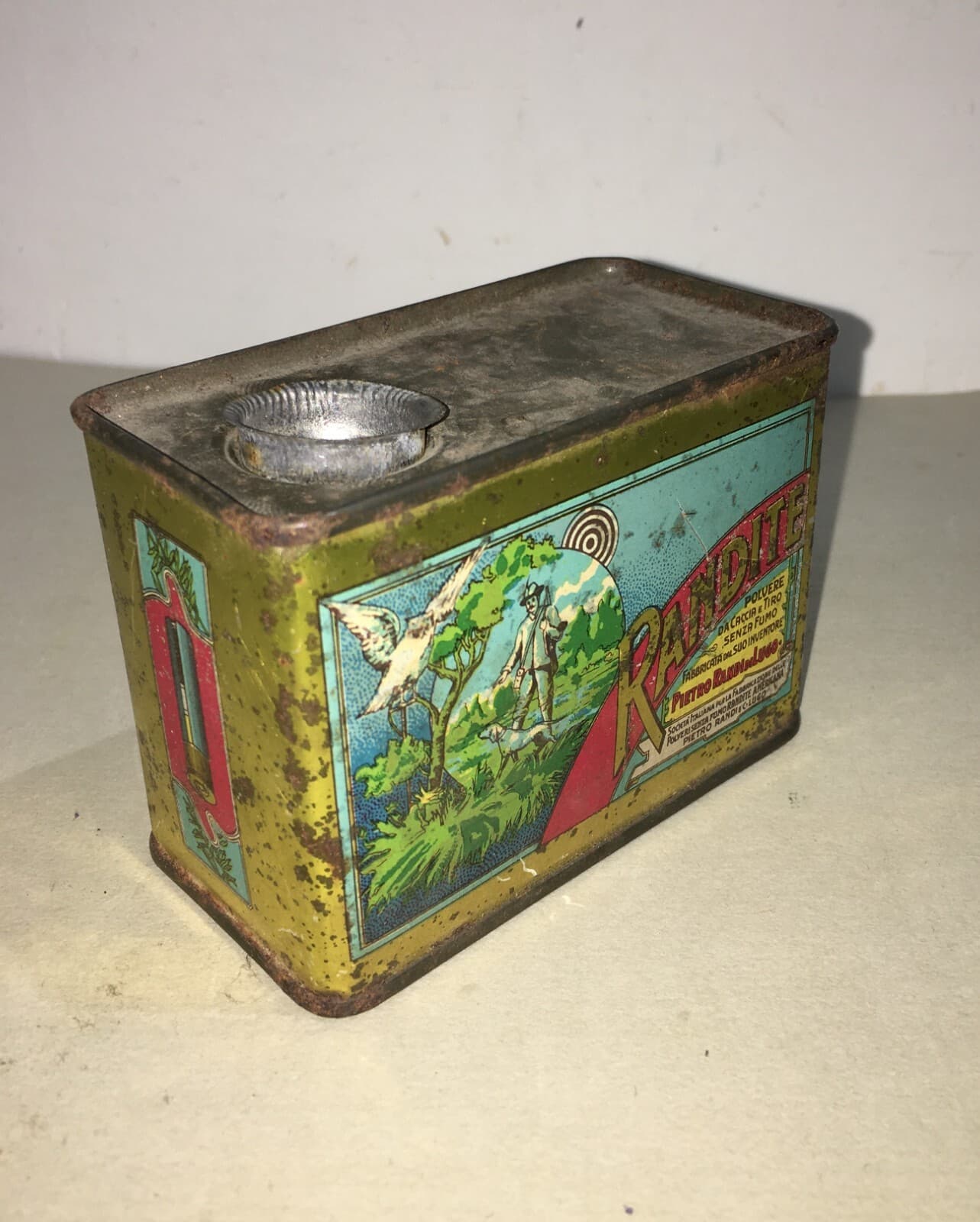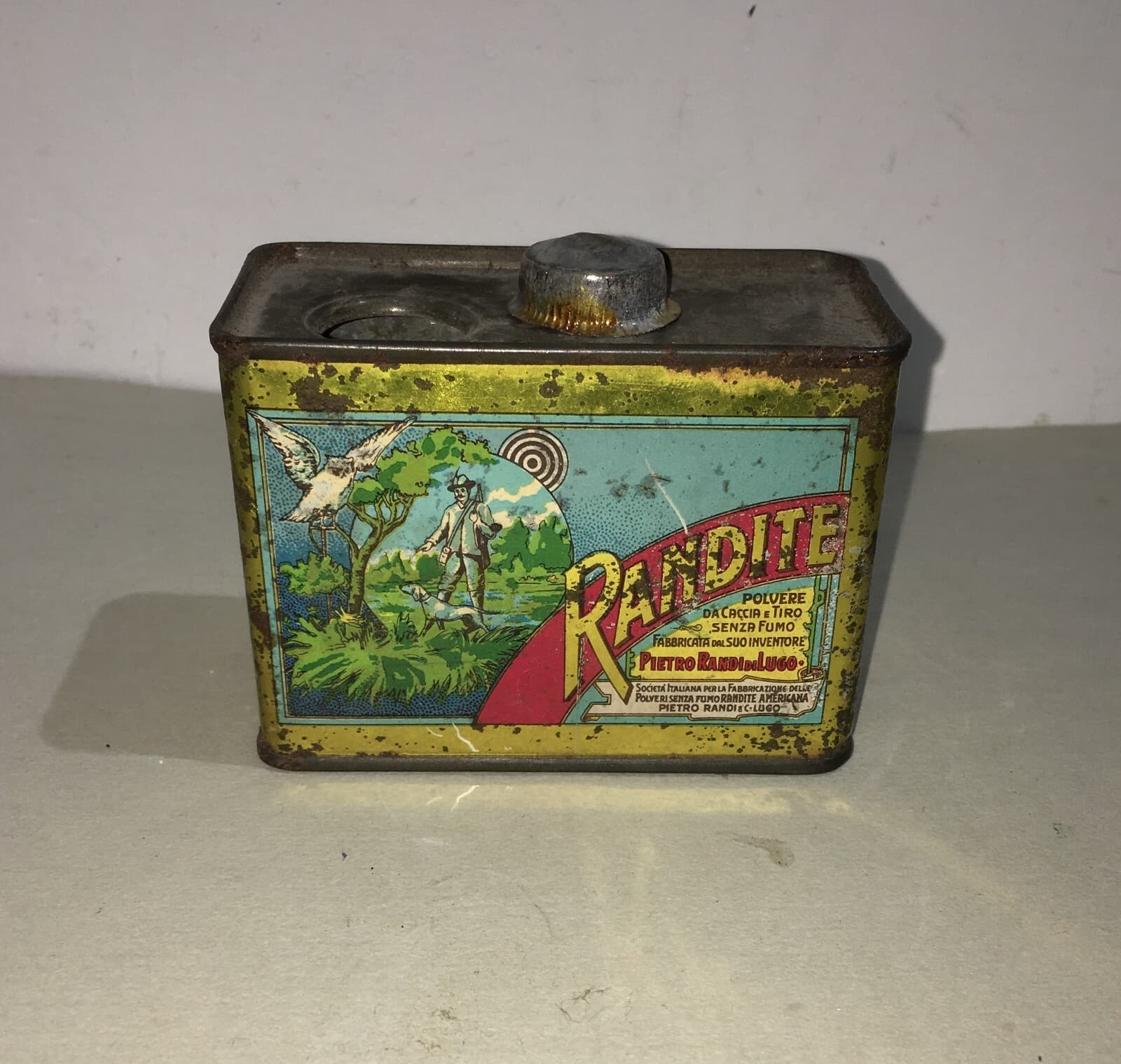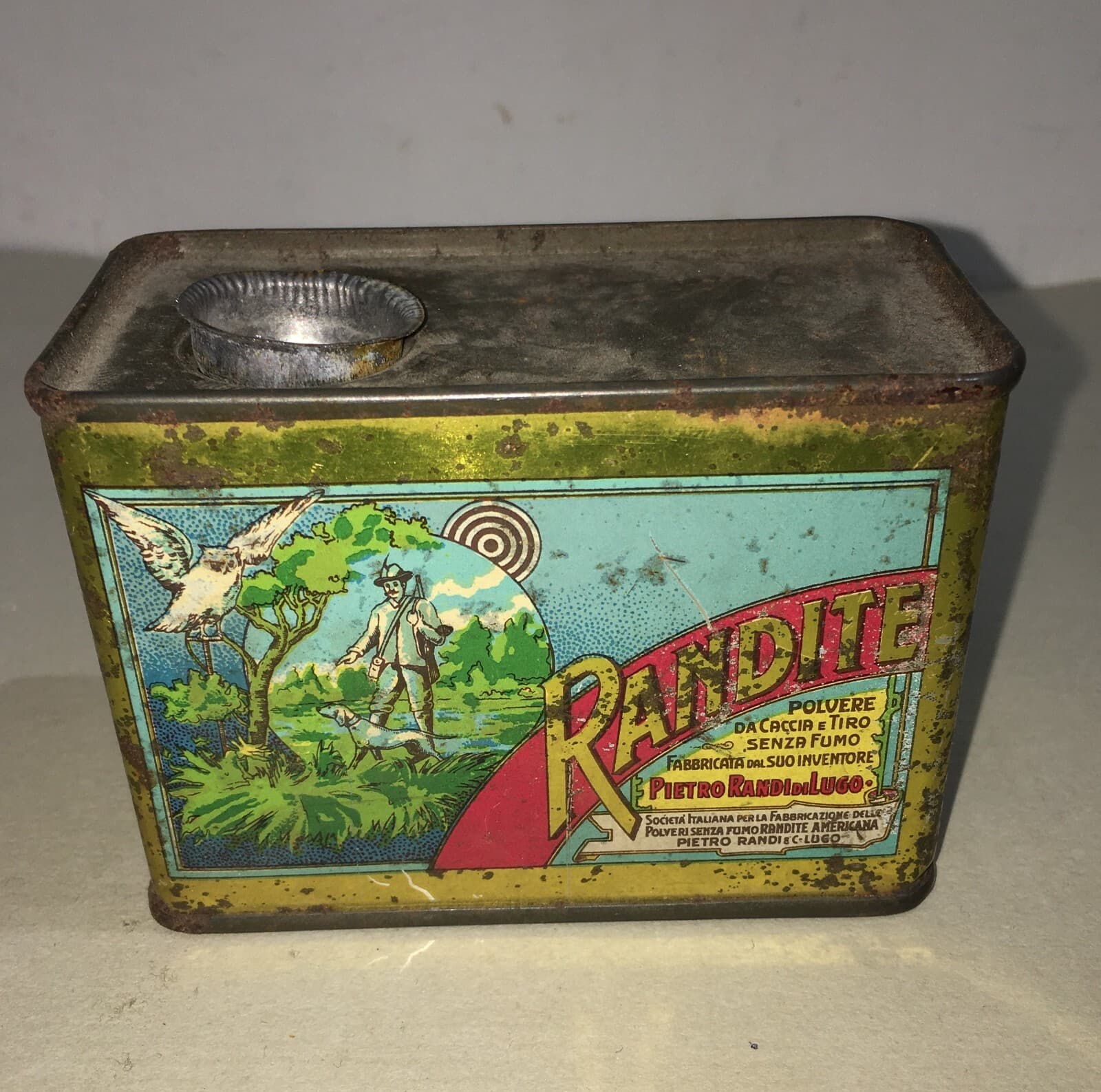 Caccia, Cacciatori, Randite: Scatola Pubblicitaria In Latta Cromolitografata Di Lugo
