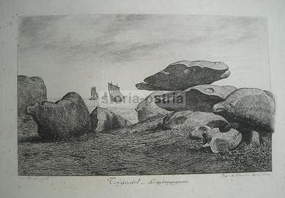 Trégastel, Champignons. Antica Incisione Di Th. Busnel, Salmon Ardail