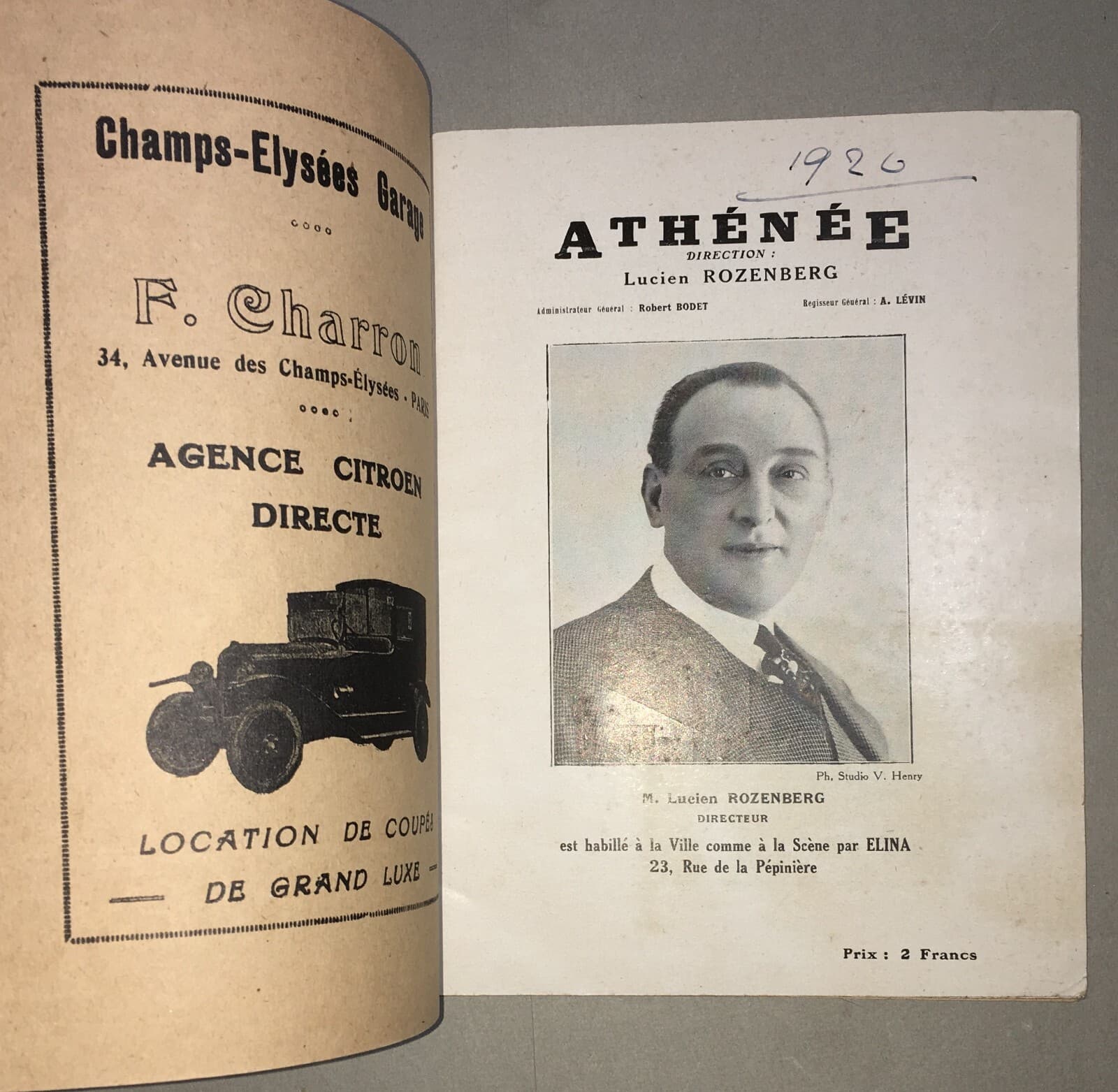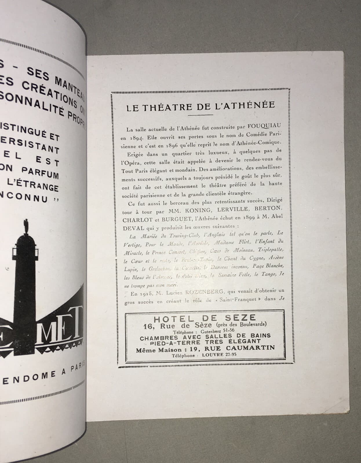 Teatro In Francia: Libretto Dell'Athénée Con Copertina Di Paul Heuzé