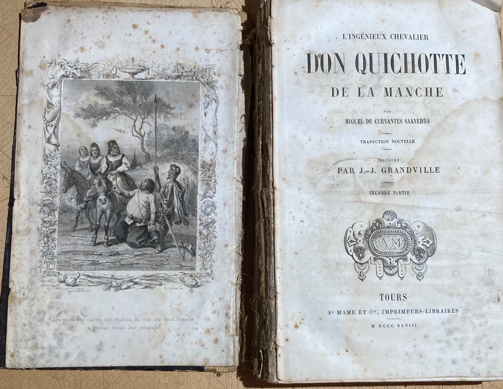 Cervantes Antica Rara Edizione Illustrata Tours 1848 Artista Grandville Tavole