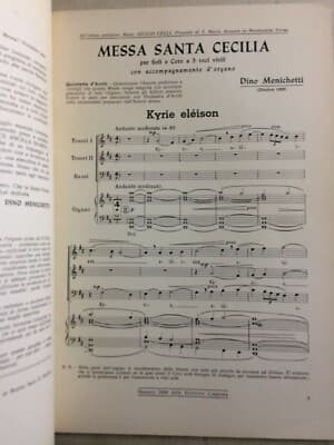 Musica: Spartito Musicale Di Dino Menichetti, Messa Santa Cecilia, Copertina Di L. Bartoli