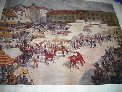 Folklore E Arte: Animata Scena Di Mercato A Monza, Piazza Mercato, 1910. Arte Di Guido Caprotti.