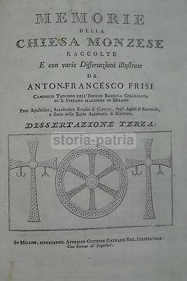 Milano, Monza. Storia Locale: Chiesa Monzese. Antonio Francesco Frisi. Libro Antico Illustrato.