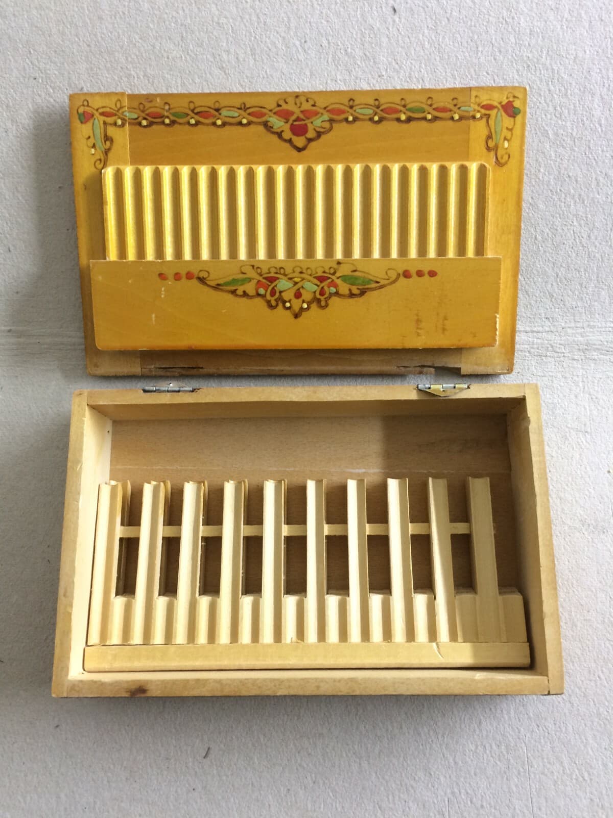 Scatola Porta Sigarette In Legno Con Motivi Policromi Pirografati