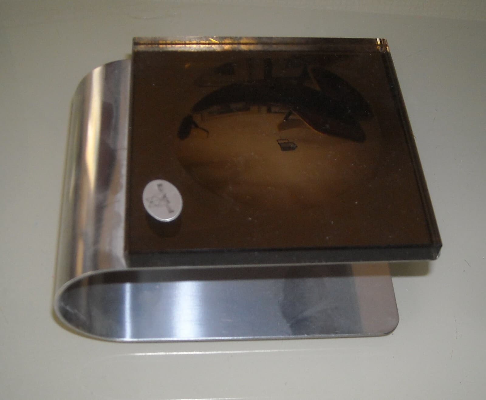Modernariato: Soprammobile Di Design In Acciaio E Vetro Fumé, FAB