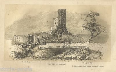 Antica Veduta Prospettica Del Castello Di Ardea, Litografia Del XIX Secolo