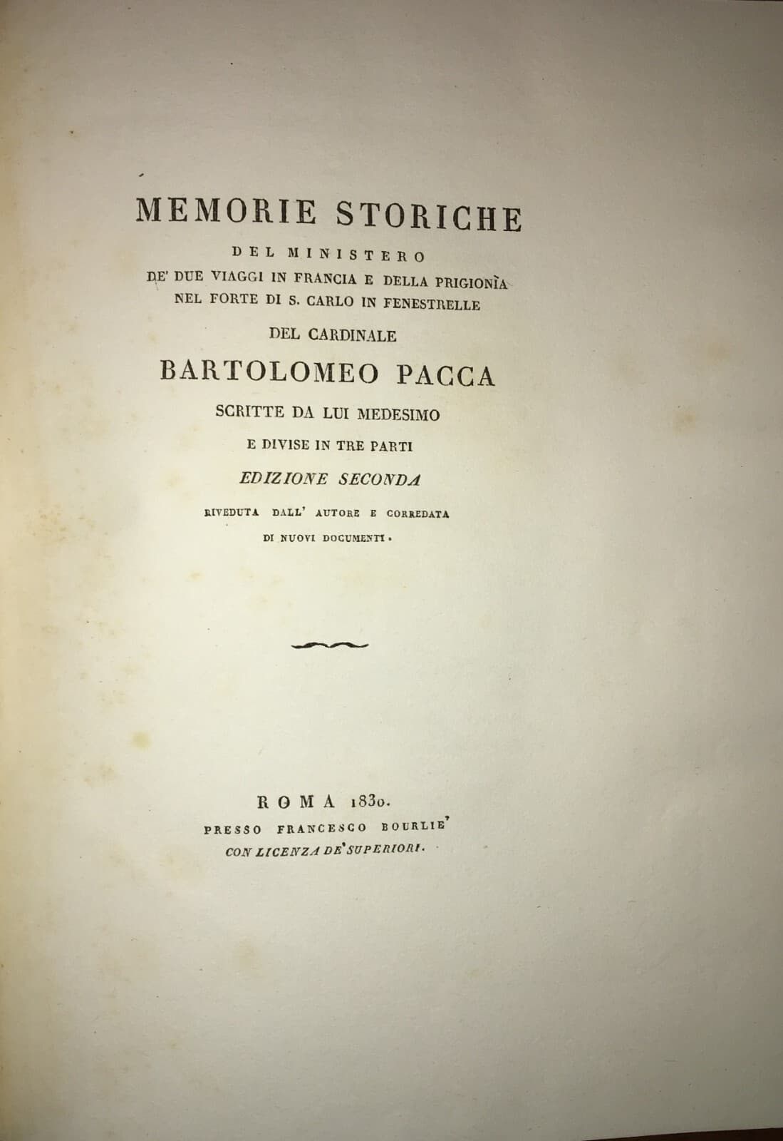Cardinale Bartolomeo Pacca: Memorie Storiche, Edizione 1830 In Legatura Di Pregio