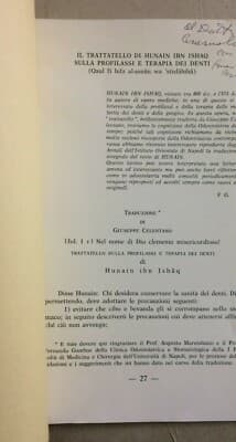 Il Trattatello Di Hunain Ibn Ishaq Sulla Profilassi E Terapia Dei Denti