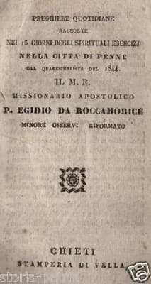 Abruzzo, Penne, Roccamorice: Preghiere Di Padre Egidio, Edizione Devozionale, 1844