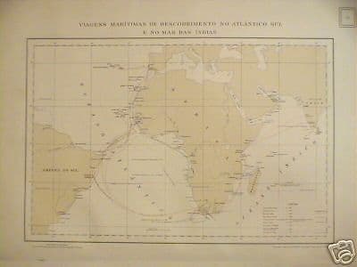 Mappa Antica Dei Viaggi Di Esplorazione Nell'Atlantico E In India: De Gama E Vespucci