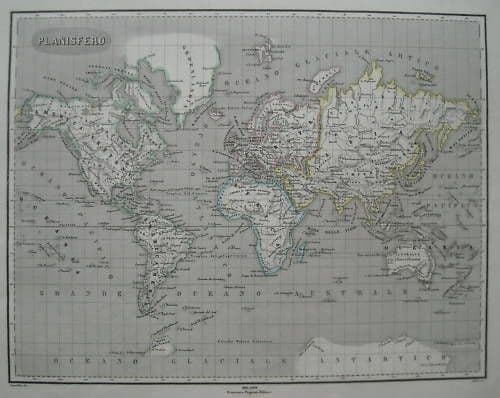 Planisfero Antico 1850 Allodi Naymiller Continenti Pagnoni Milano