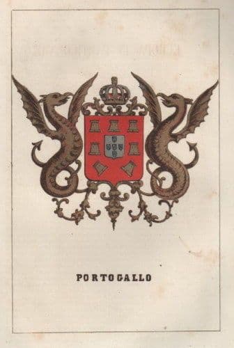 Litografia Araldica Portogallo Originale 1850 Stemma Colorato