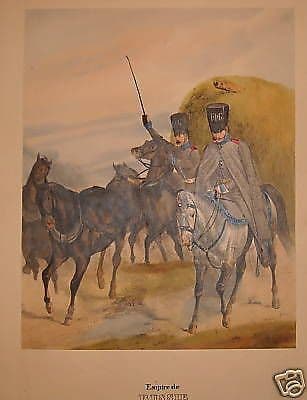 Litografia Soldati Russi A Cavallo, Impero Di Russia, Metà XIX Secolo