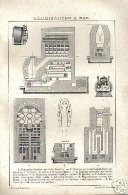 Stampa Antica Illuminazione A Gas, Contatore E Focolare, Primo '900