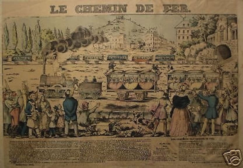 Stampa Antica Epinal, Treni E Ferrovie, Le Chemin De Fer