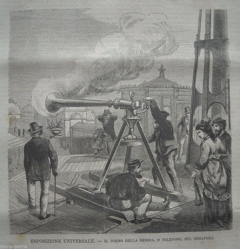 Incisione Antica Corno Della Nebbia O Telefono Sul Semaforo, Vienna 1873