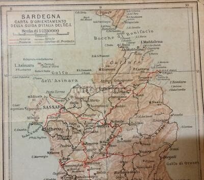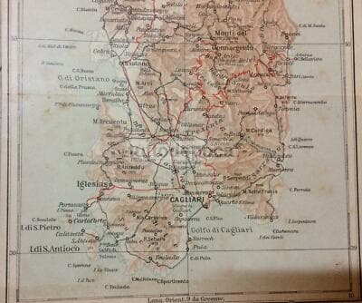 Sardegna: Antica Mappa Geografica Di Cagliari, Nuoro, Sassari, Tavolara E Oristano