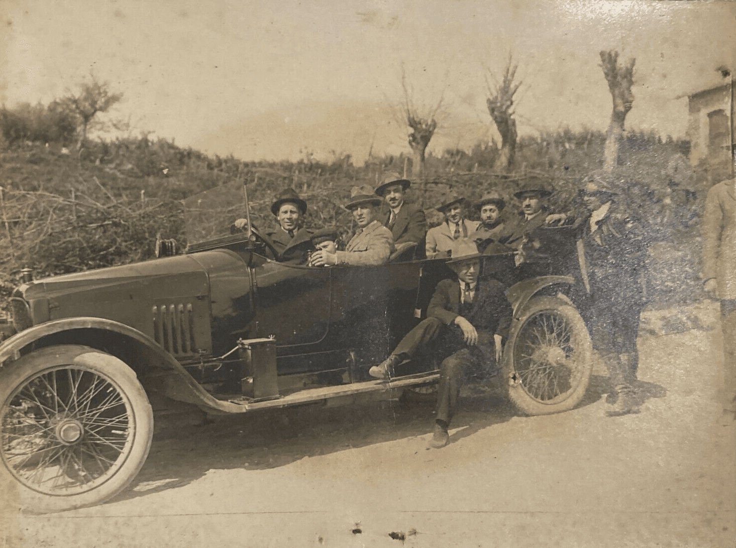 Automobilismo, Auto d'Epoca: Antica Foto Storica, Animata Veduta Con Automobile