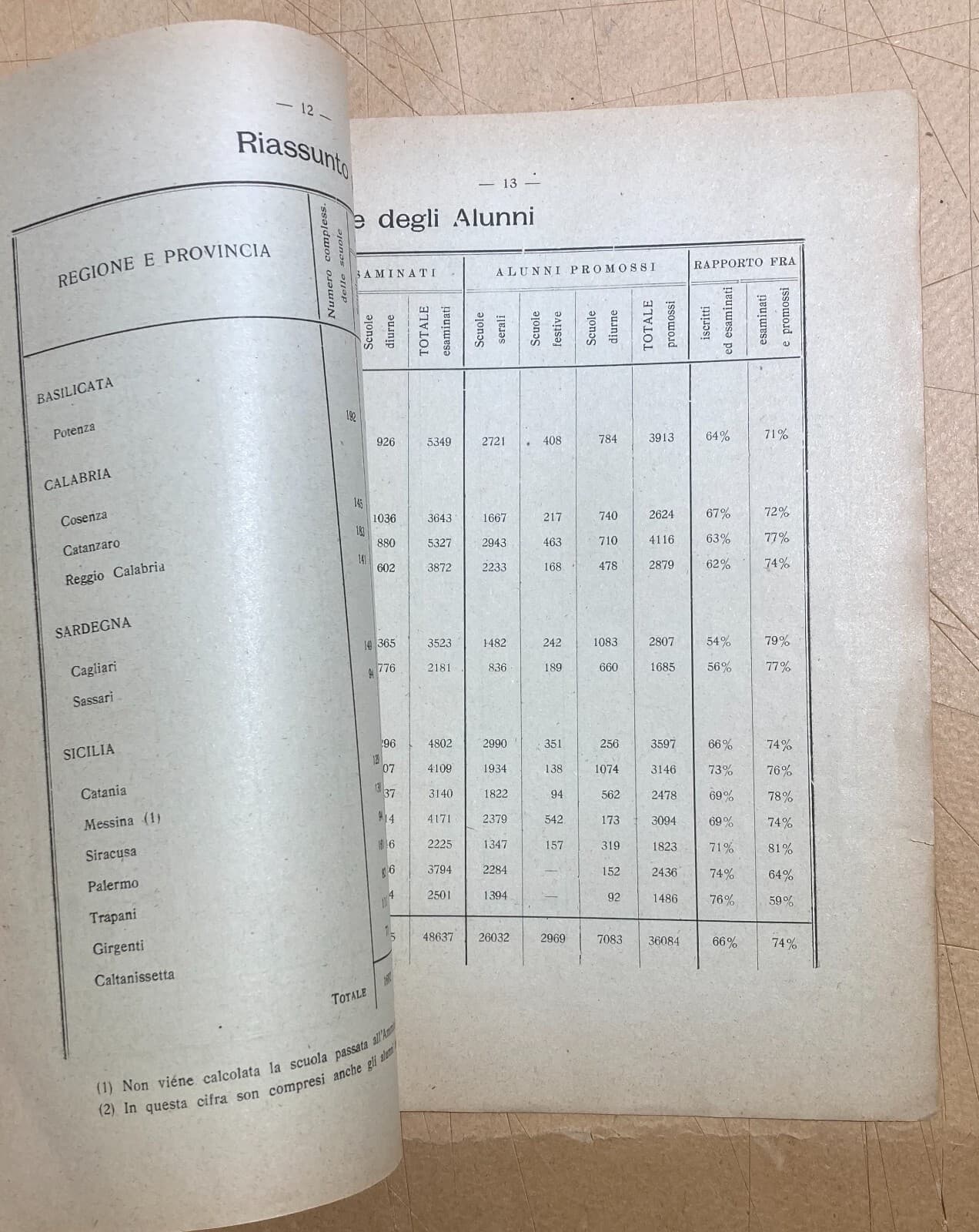 Scuola, Alunni E Analfabetismo In Basilicata, Calabria, Sicilia E Sardegna: Statistiche (1923 1924)