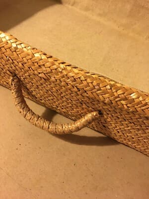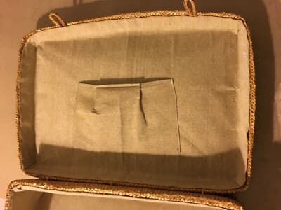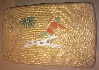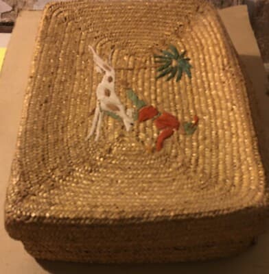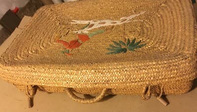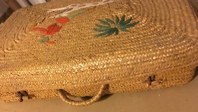 Modernariato: Antica Valigia Di Paglia Con Decoro Artistico Di Scena Di Caccia