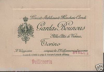 Torino: Moda E Biancheria Garda & Bounous, Biglietto Pubblicitario Con Araldica, Bari