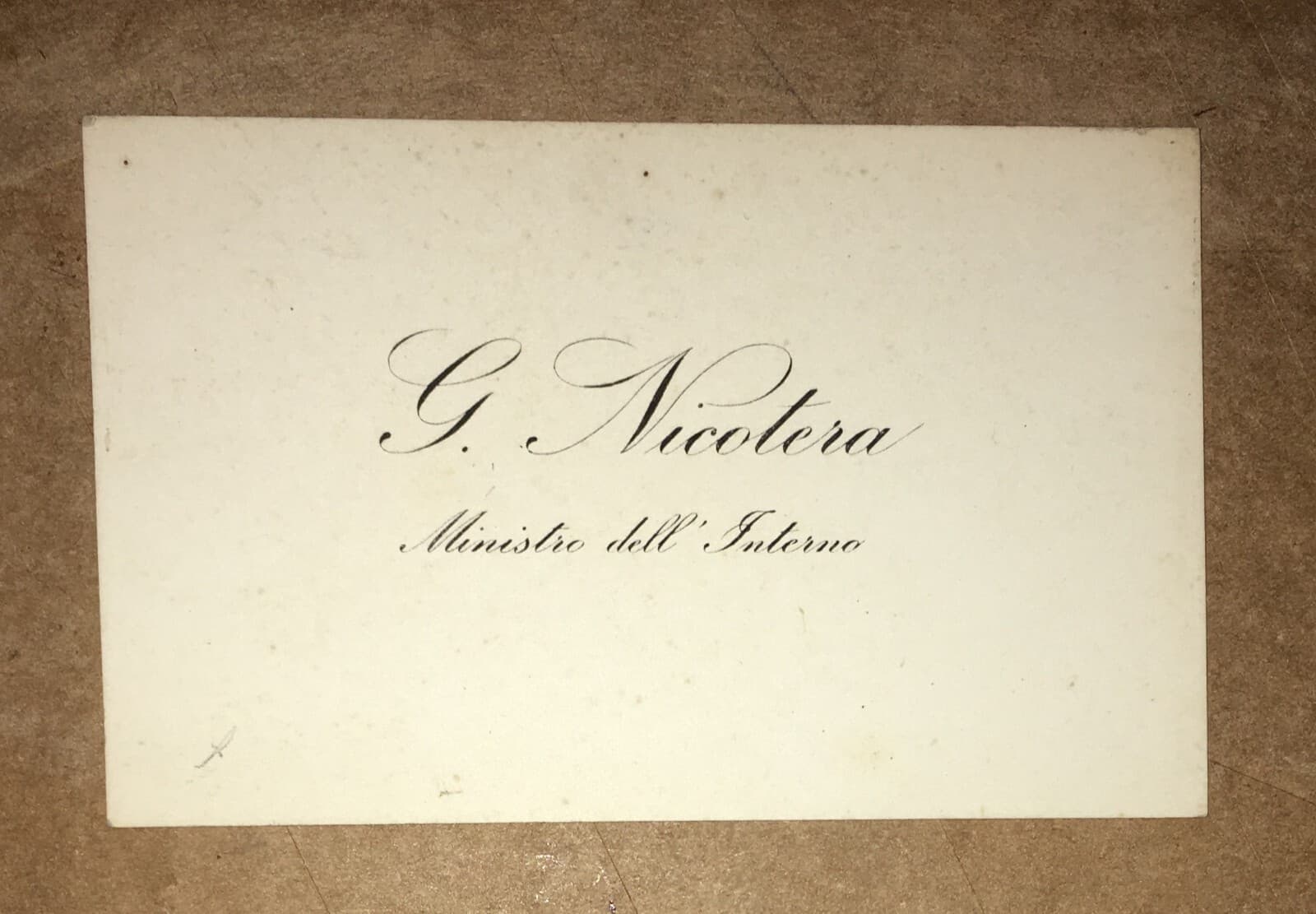 Giovanni Nicotera Biglietto Da Visita Ministro Dell'Interno Calabria