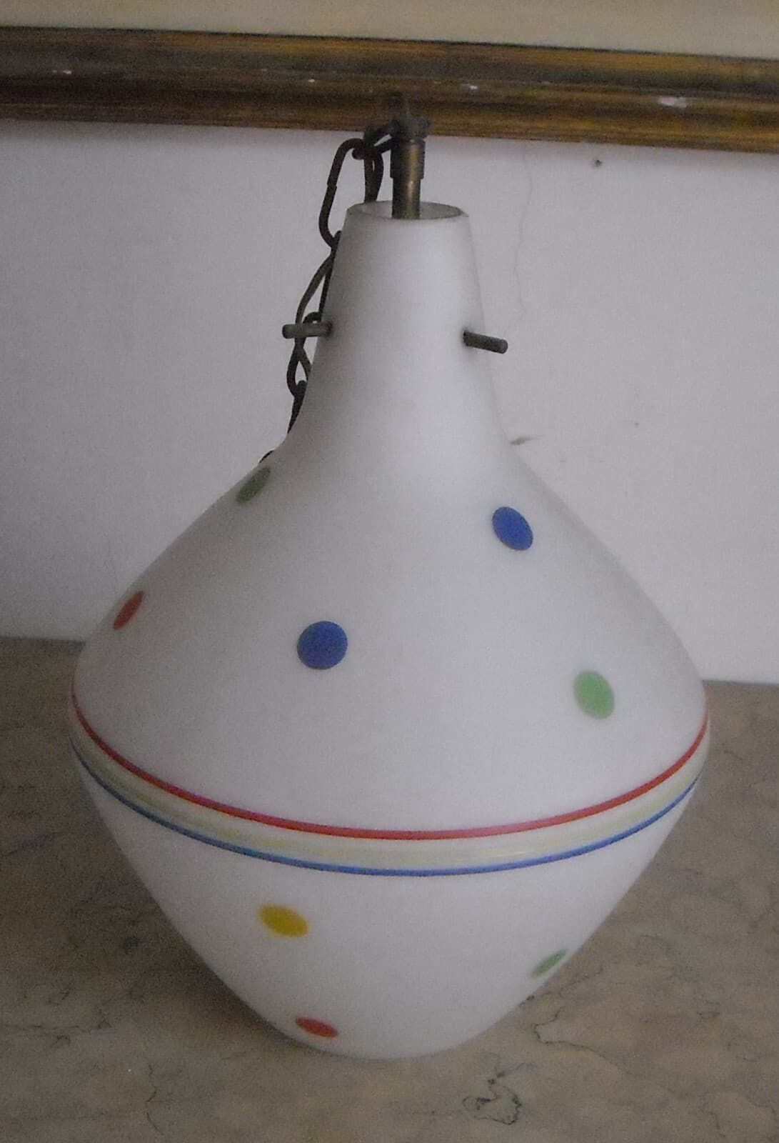 Lampada A Sospensione In Vetro Opalescente, Design Anni '50 '60