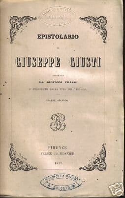 Epistolario Di Giuseppe Giusti. Firenze, Le Monnier, 1859.