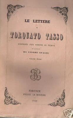 Lettere Di Torquato Tasso, Curata Da Cesare Guasti Firenze, Le Monnier, 1853