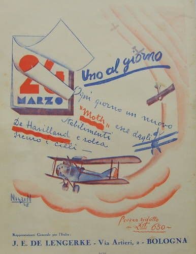 Pubblicità De Havilland Moth E Castiglioni Avionite, Bologna Milano 1928