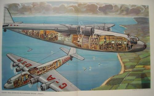 Spaccato Aereo Passeggeri Ensign Inghilterra Stampa Antica 1940