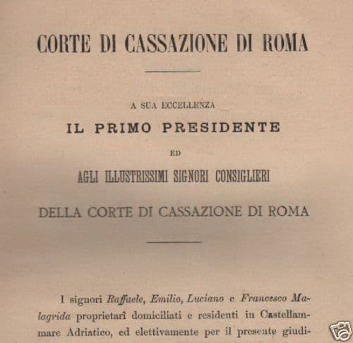 Corte Di Cassazione Roma 1882 Famiglia Malagrida Pescara Abruzzo