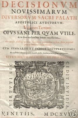 Decisionum Novissimiarum Sacra Rota 1618 Venezia Zenarii Vol. III