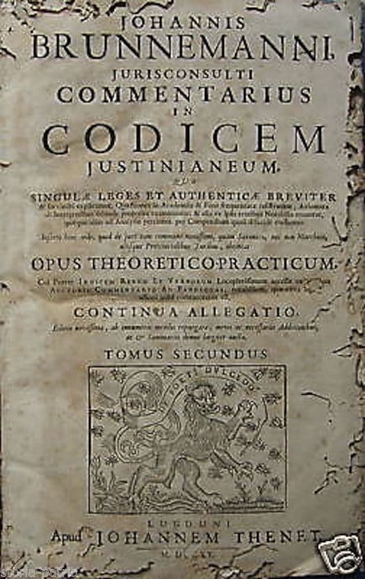 Brunnemann, Commentarius In Codicem Justinianeum, 1715, Diritto Romano.