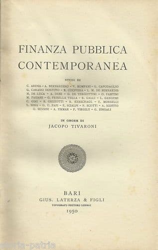 Finanza Pubblica Contemporanea In Onore Di Jacopo Tivaroni 1950