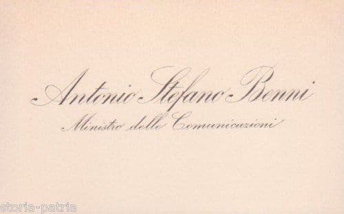 Biglietto Da Visita Di Antonio Stefano Benni, Ministro Delle Comunicazioni
