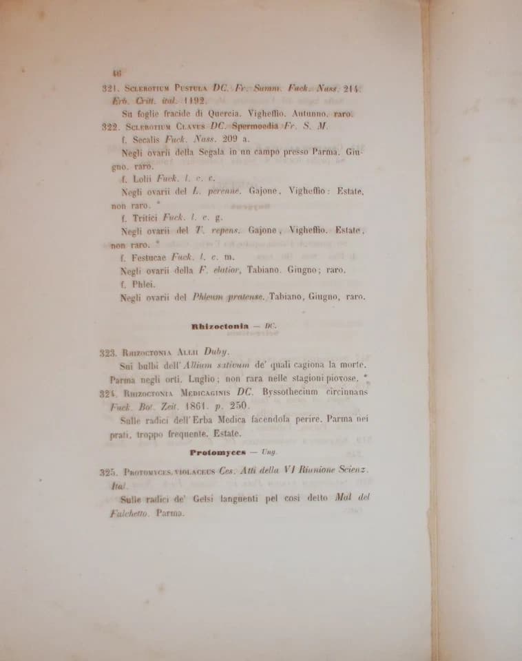 Giovanni Passerini, Primo Elenco Di Funghi Parmensi, 1867