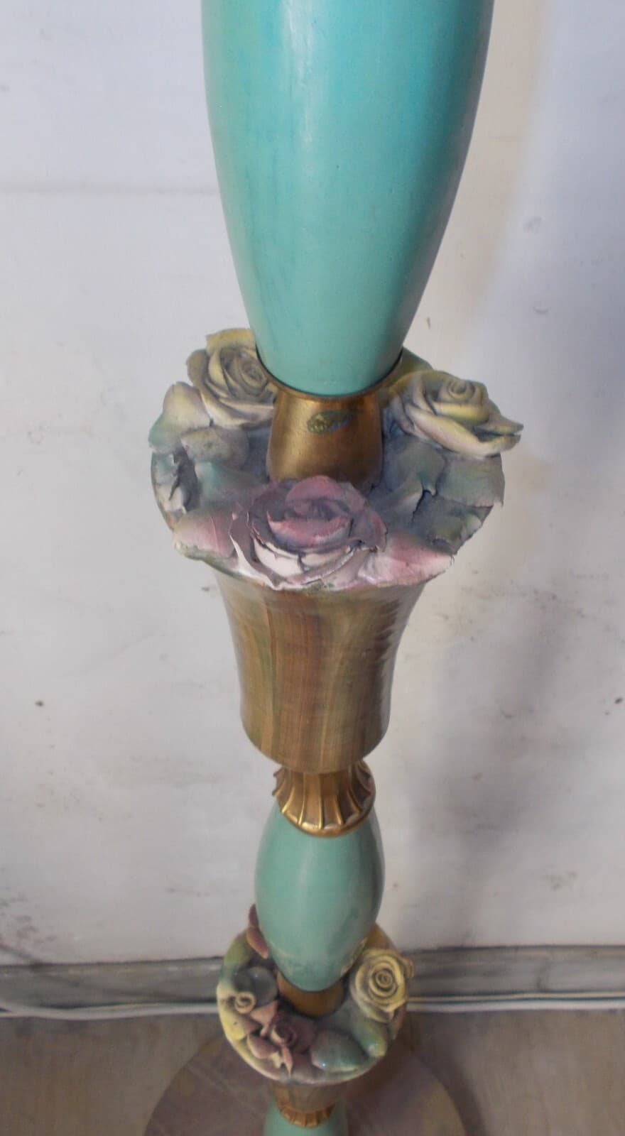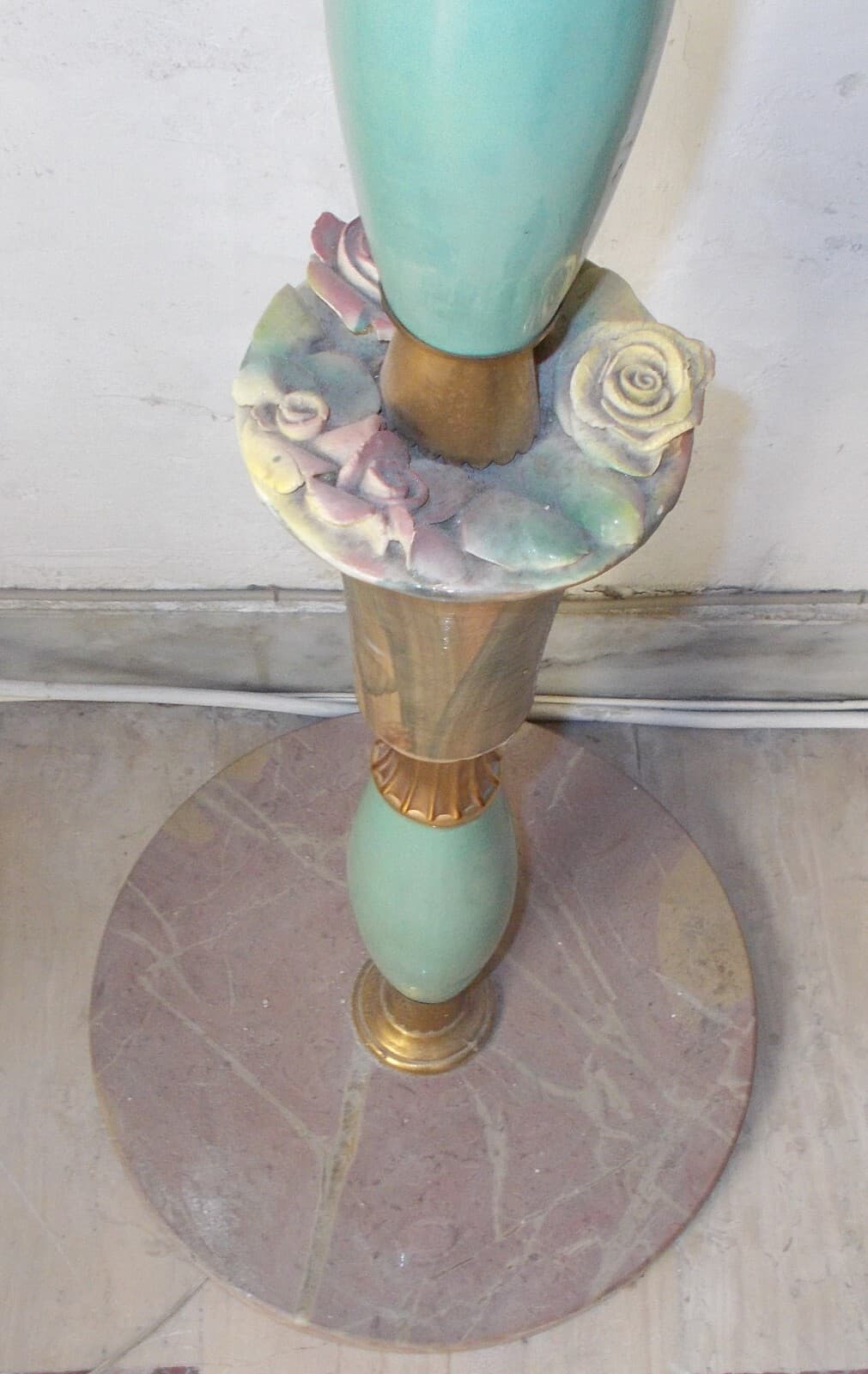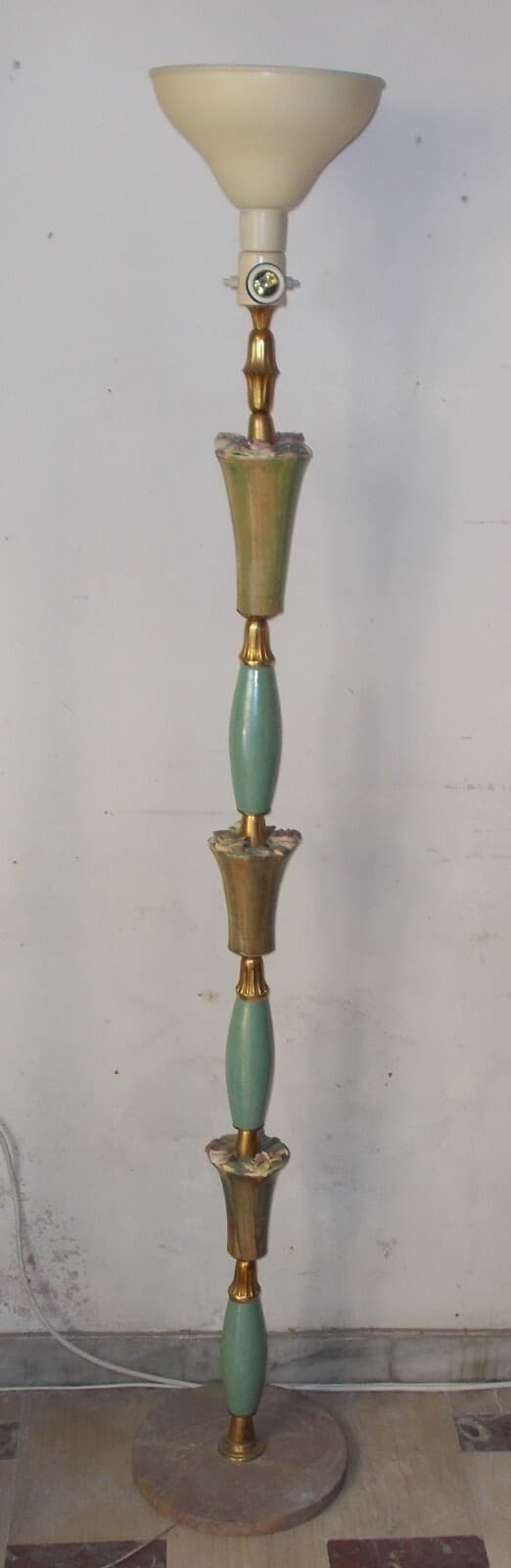 Modernariato, Design: Decorativa Lampada d'Epoca Piantana Anni '50 Con Decori Floreali
