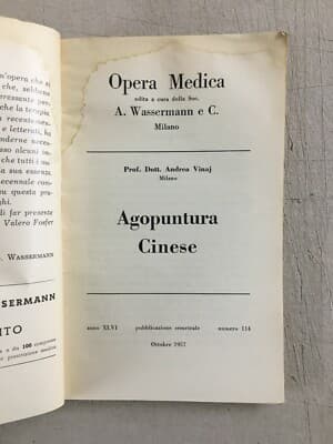 Medicina: Agopuntura Cinese. Andrea Vinni, Edizione Wassermann, 1957