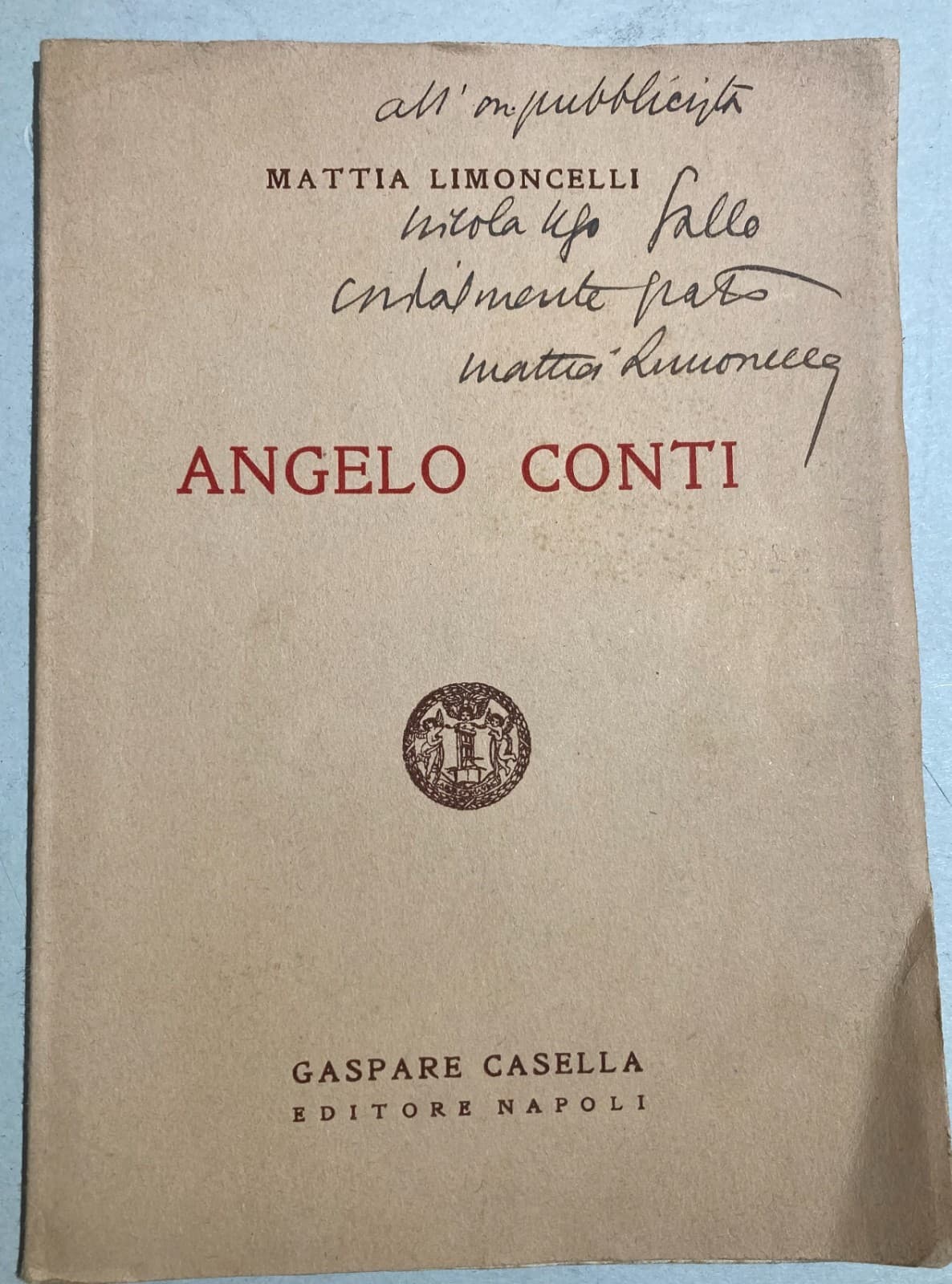 Mattia Limoncelli, Angelo Conti Ricordo Biografico Con Dedica Autografa