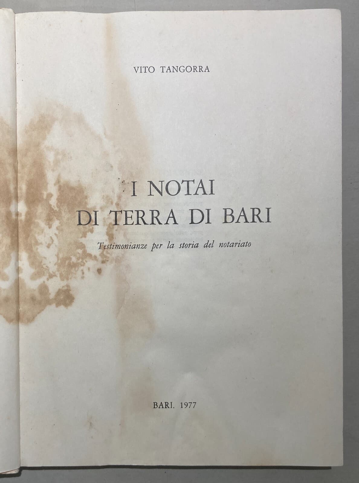 I Notai Di Terra Di Bari: Testimonianze Per La Storia Del Notariato Vito Tangorra 1977
