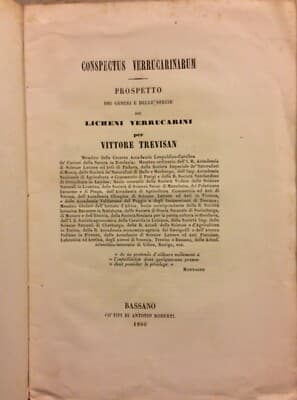 Scienze Naturali, Licheni Verrucarini, Trevisan, Bassano, 1860.