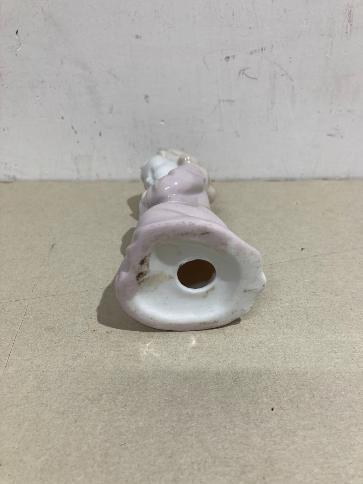 Grazioso Soprammobile Piccola Scultura In Bisquit Figura Femminile Con Uovo