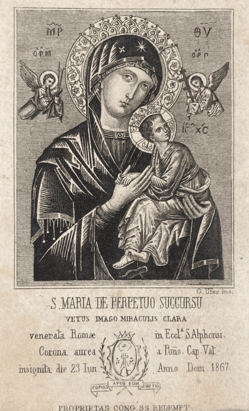 Stampa Popolare Devozionale. Santino Della Madonna Del Perpetuo Soccorso. Incisore O. Ufer.