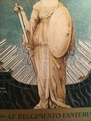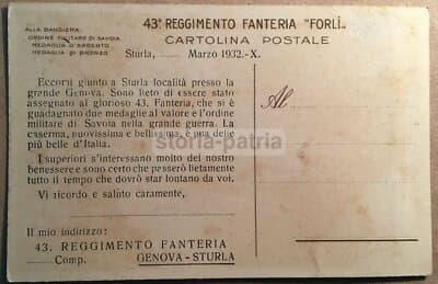 Militaria: Cartolina 43° Reggimento Fanteria Forlì, Allegoria Dell'Italia E Battaglie Storiche, 1932