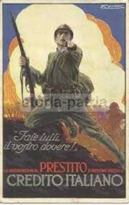 Militaria: Banche, Credito Italiano, Prestito Nazionale, Artista Mauzan, Pubblicità