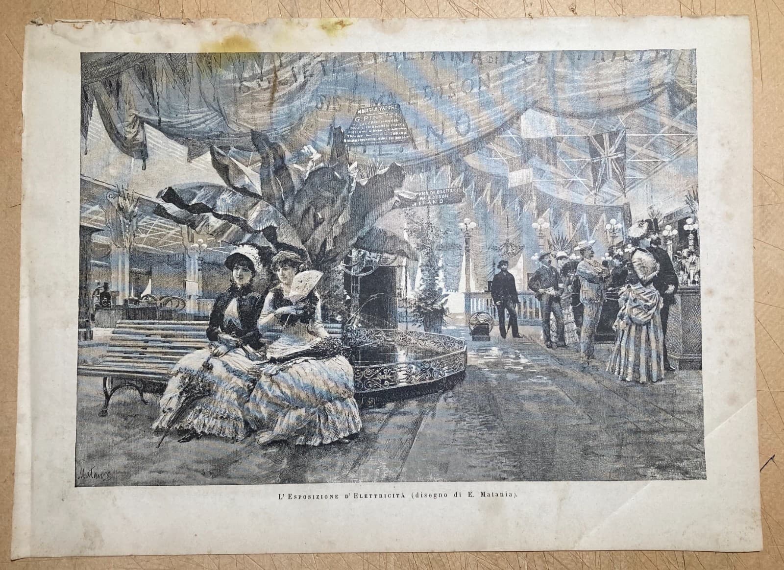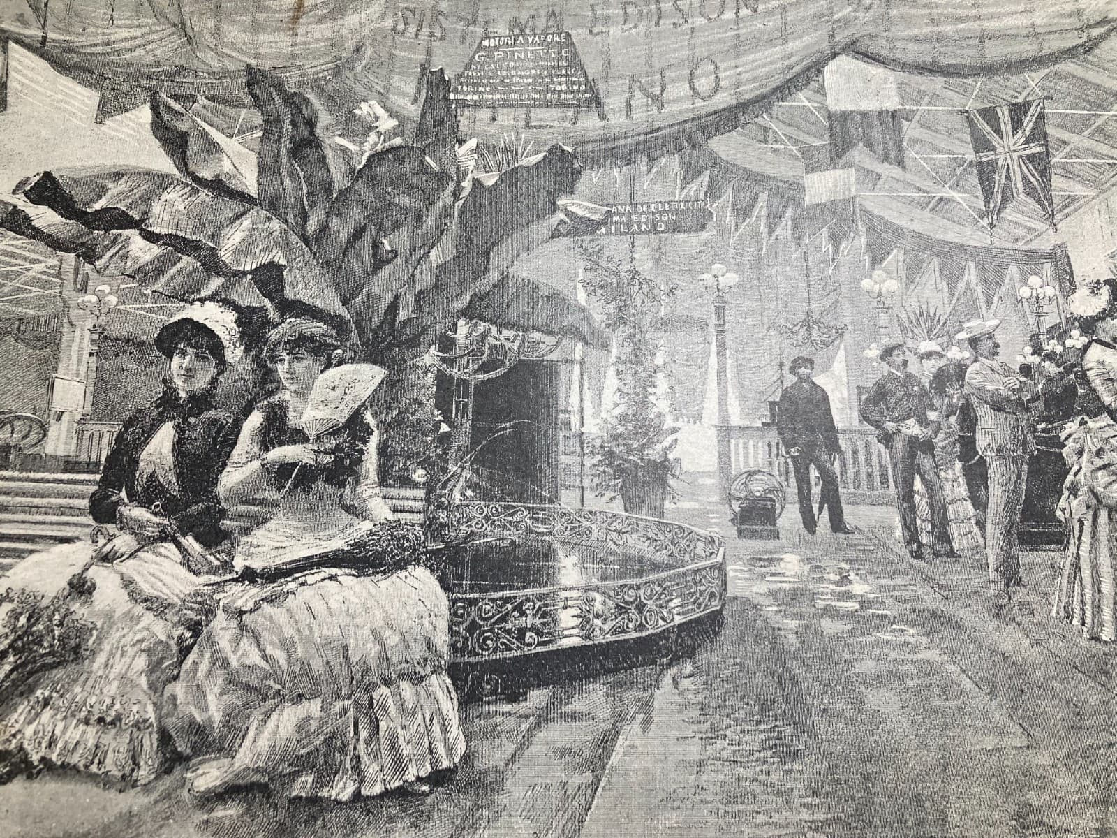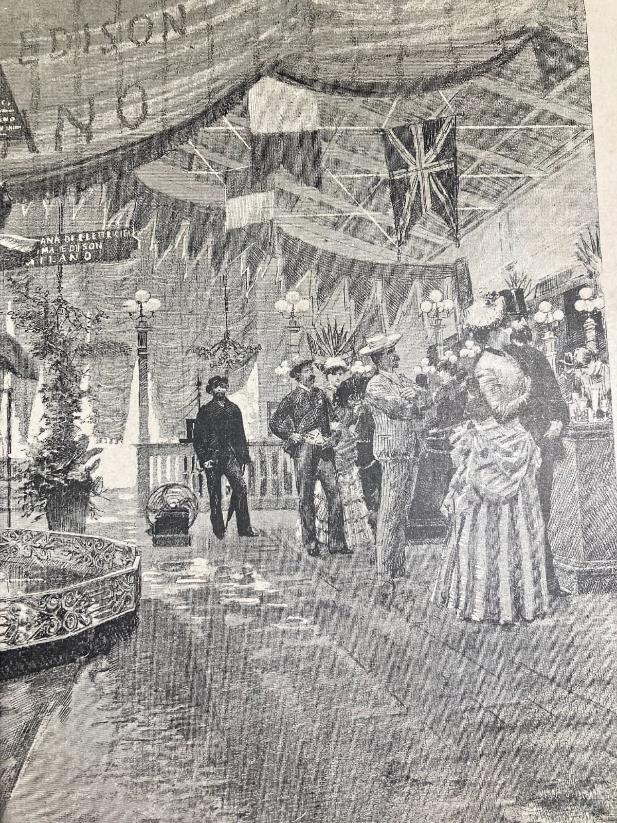 Esposizione Dell'Elettricità A Torino: Antica Stampa Dei Motori Pinette E Sistema Edison