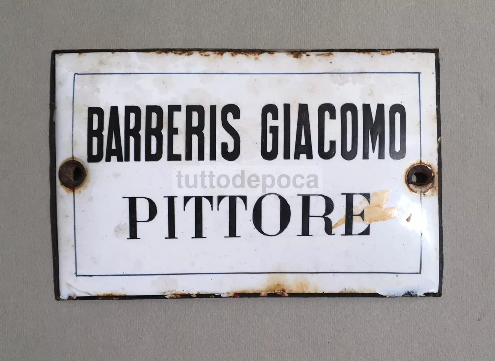 Arte: Pittore Giacomo Barberis Targa Pubblicitaria In Latta Porcellanata