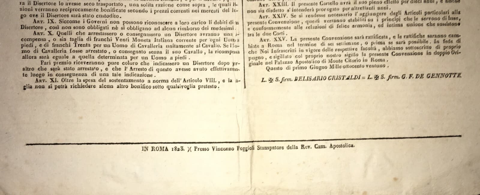 Antico Manifesto: Bando Sulla Consegna Dei Disertori, 1823