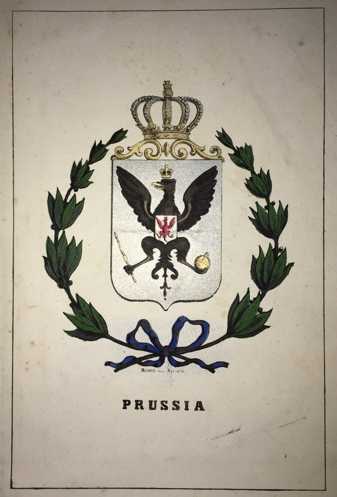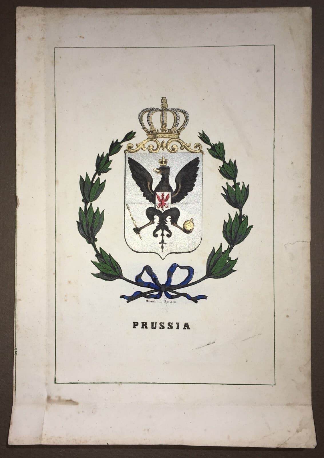Araldica. Antico Stemma Allegorico. Litografia A Colori. Bertotti. Prussia, XIX Secolo.